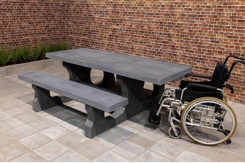 Table pique nique en béton aux dimensions spéciales pour fauteuil roulant