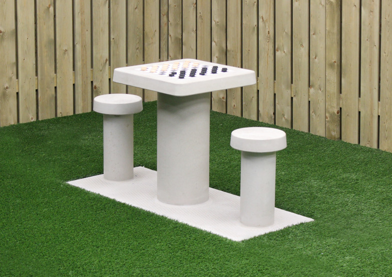 Cette table de jeu de dames est fabriquée de béton naturel. L’effet béton donne son bel aspect à la table.