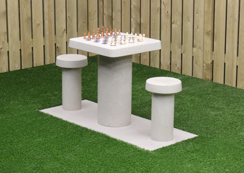 Cette table d’échecs est fabriquée de béton naturel. L’apparence béton donne son bel aspect à la table.